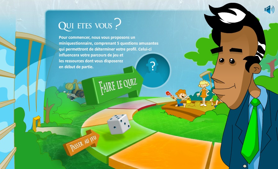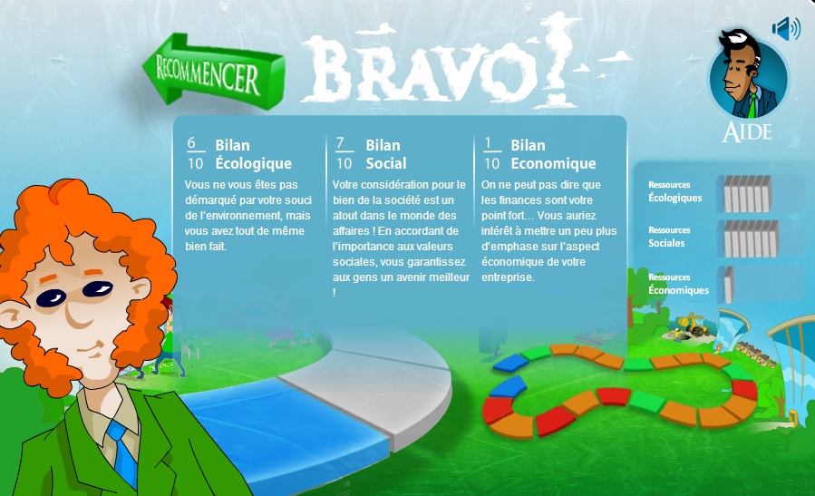 Jeu de l'oie sur le thème de la gestion d'entreprise. Le jeu propose de participer au développement d'une des nombreuses entreprises proposées en gérant 3 de ses aspects : économique, écologique et social. Le joueur devra lancer un dé et surmonter un défi (en général, soit subir un événement aléatoire, soit donner des lignes de conduite au choix) à chaque tour de jeu.
