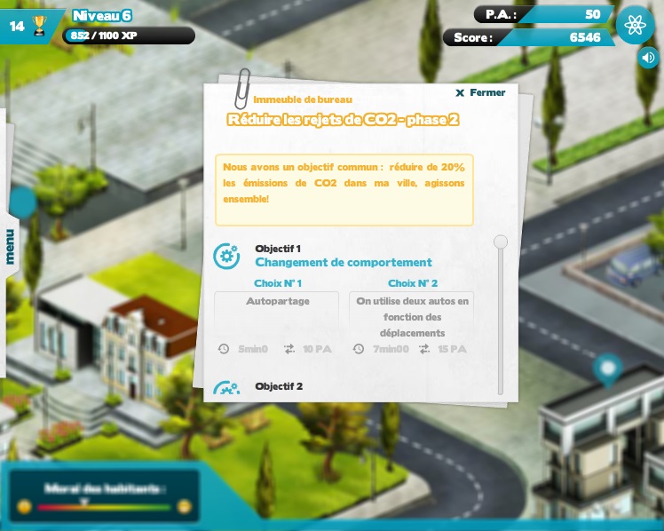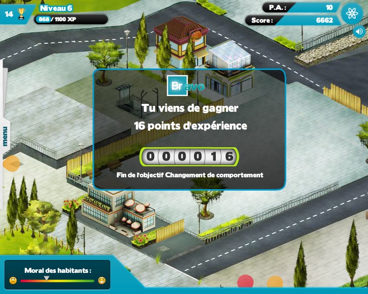 Au premier abord, ChemNext se montre sous son plus beau jour : graphiquement réussi, le jeu présente une vue de trois quarts d'une ville, qui est une représentation classique dans bien des jeux de gestion. Beaucoup d'éléments de jeu moderne sont présents : score, éléments à débloquer au fur et à mesure de son avancement, trophées marquant la réussite de certaines actions. L'interface est simple, le maniement à la souris est simple et instinctif. Dans les faits, le jeu est simplissime, voire simpliste : la gestion de la ville consiste à prendre des décisions : en cliquant sur les icônes apparaissant au-dessus des bâtiments, on demande au joueur de prendre une décision sur une question relative à l'optimisation "verte" ; il n'y a que deux choix possibles, et souvent l'un est explicitement bon et l'autre explicitement mauvais. Ce qui rend le jeu trop simple, même si un contenu concis mais clair est donné quand à l'impact de son choix. De temps en temps, un bref quiz fait son apparition, rompant la monotonie. Problèmes : d'une part, chaque décision prise par le joueur nécessite un temps de "mise en place", qui dure parfois plusieurs minutes ; cela rallonge artificiellement le temps de jeu, vu que l'on attend parfois 5 à 10 minutes le résultat d'une décision. De plus, le jeu se base sur les modèles développés pour les jeux sur réseaux sociaux, et les Free to play pour smartphones. Le jeu est gratuit, mais limité dans le temps ou le nombre d'actions possibles. De fait, lorsque les missions du jour sont remplies, le maire apparaît pour prévenir le joueur que les missions du moment sont terminées, et qu'il doit se reconnecter plus tard... De fait, finir le jeu prend plusieurs jours... Un habillage sympathique, une interface claire et un contenu intéressant, mais l'intérêt en terme de jeu présente vite ses limites.