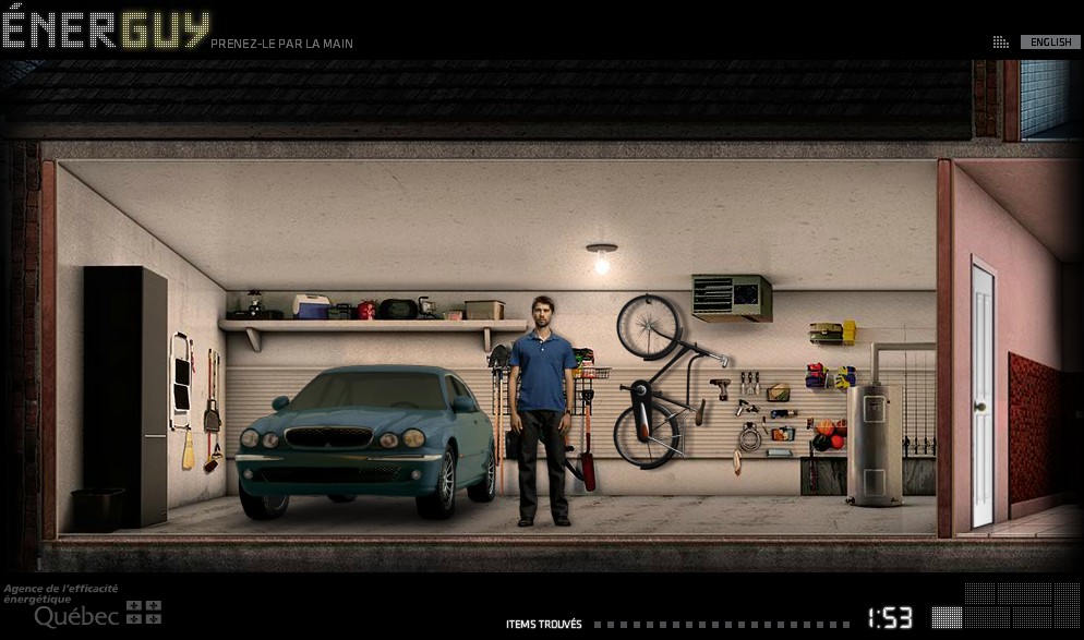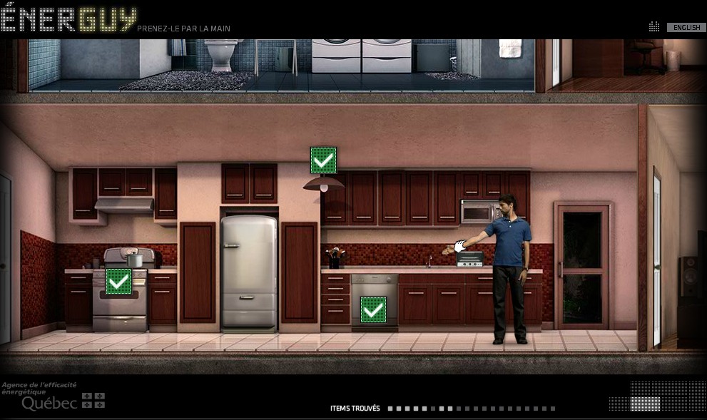 Il s'agit d'un petit jeu sur les éco-gestes. En 2 minutes, le joueur devra guider un personnage dans les diverses pièces d'une maison et trouver les 20 situations où il est possible de changer ses habitudes pour faire des économies. En fin de partie, les 20 éco-gestes s'affichent en liste en rappel des actions à effectuer pour chacun.