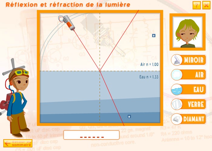 Ce site permettra au joueur de découvrir quelques propriétés de la lumière, comme les différentes sources, la réfraction...