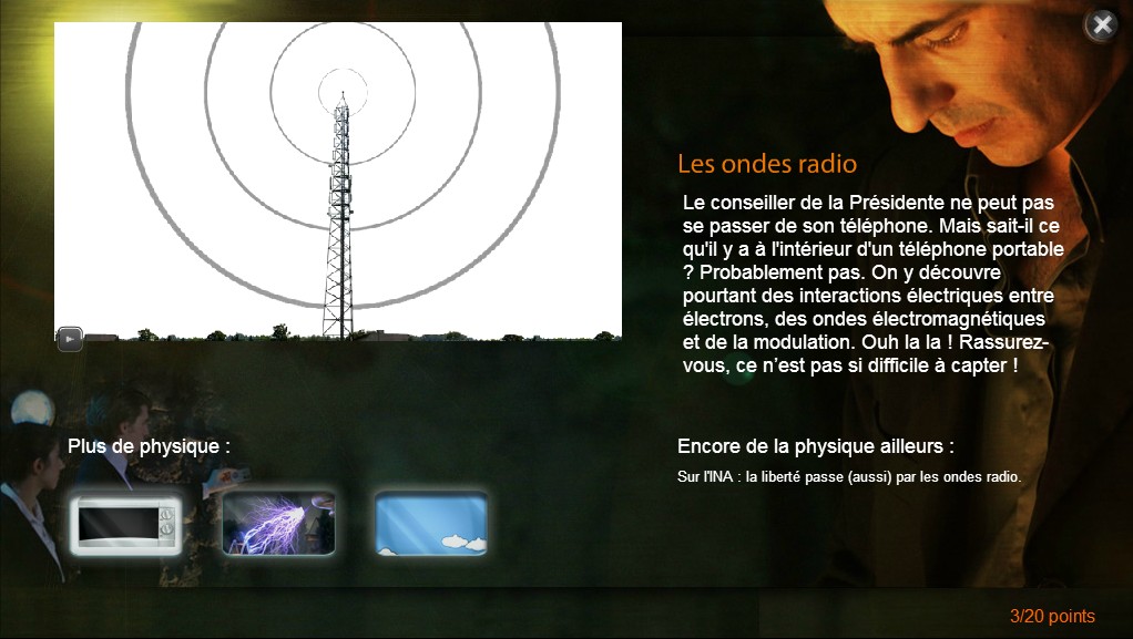 Film interactif. Dans cette vidéo, le spectateur doit cliquer 20 fois pour avoir des explications sur différentes notions autour de la science dans la vie courante.