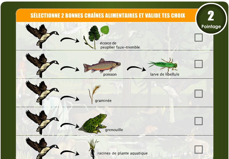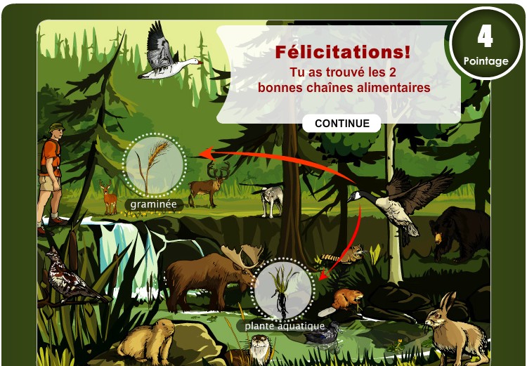Mini jeu proposé par le site de Science en jeu. Il faut associer à des animaux vivant dans la province canadienne de Québec leur chaîne alimentaire.