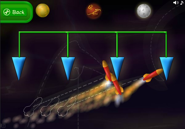 Petit jeu dans lequel il faut placer et orienter des fusées pour atteindre des planètes. Il faut compenser la gravité et parfois faire en sorte que des fusées passent par des points précis pour débloquer des passages d'autres fusées.
