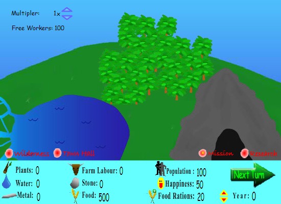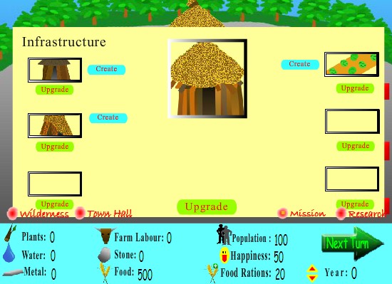 Jeu de gestion d'un village tribal. Le joueur devra gérer son village pour le développer et garder ses habitants en vie.
