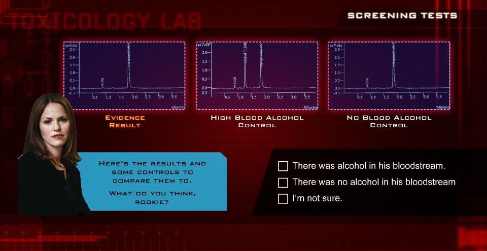 CSI : The experience est une petite curiosité en soi, de par le fait qu'elle repose sur une licence bien célèbre ; on ne s'attend pas à tomber sur ce genre de jeu quand on cherche un serious game, d'autant plus que les jeux exploitant une grosse licence ne sont pas toujours bons. Et pourtant, il serait dommage de passer à côté de celui-ci. Techniquement, le jeu n'est pas une démonstration ; reposant sur le principe du point and click, tout à l'image est fixe, ou presque ; mais se retrouver dans l'univers de la série TV est plaisant, d'autant plus que tout est très fidèle. Ainsi, on retrouve les personnages et les environnements que l'on connaît, et cela fait mouche. Le jeu propose cinq parties jouables : un (très) long tutoriel, et quatre enquêtes à mener. Dans chaque enquête, le joueur doit relever des indices, interroger des témoins et des suspects, analyser ce qui a été ramassé (spectrographie, séquençage d'ADN, empreinte digitale, etc.), et utiliser toutes les informations à bon escient afin d'identifier un coupable. Comme le jeu se veut fidèle à la série et aux méthodes de la police scientifique, il n'est pas rare de devoir faire plusieurs allers-retours pour, par exemple, interroger un suspect une seconde fois, car une analyse à fait émerger de nouveaux éléments. De ce fait, les enquêtes ne sont pas forcément linéaires dans leur déroulement. Cette recherche de réalisme dans le jeu est accompagnée par un très fort contenu scientifique : chaque action mettant en oeuvre un concept scientifique est décortiquée avec moult détails. Ainsi, à travers une enquête, on explique en vrac ce qu'est l'ADN, comment on réalise une spectrographie et à quoi ça sert, etc. De plus, toutes les méthodes, toutes les procédures de la police scientifique sont détaillées ; le jeu se révèle donc d'une richesse insoupçonnée au premier abord. Mais cette richesse à un revers : chaque enquête ne fait pas appel à une notion, mais à toutes. Du coup, il faut pouvoir tout assimiler rapidement et jongler entre plusieurs notions : cela fait beaucoup d'informations à gérer. Pour simplifier le jeu, le gameplay se résume au strict minimum, et il suffit de cliquer au bon endroit ou de donner la bonne réponse pour avancer ; cela fait que la réussite d'une enquête ne repose pas sur l'habileté du joueur à manier la souris, mais sur sa capacité à assimiler toutes les notions, et à faire une bonne synthèse de ses résultats. Autre point : cette richesse dans les notions, et la non-linéarité des enquêtes, rendent chaque partie assez longue. Impatient s'abstenir ; mais les fans se régaleront. Attention cependant : les enquêtes reposant sur des affaires de meurtre, ce jeu ne s'adresse pas au plus jeunes...