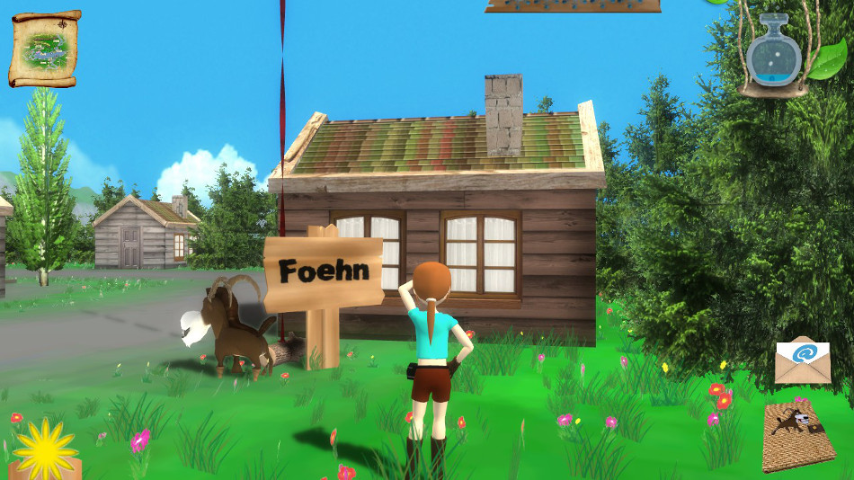 Autant le dire tout de suite, Lake adventures est un jeu dont la technique n'est pas à la hauteur des ambitions : la zone du lac dans laquelle le joueur se balade, entièrement modélisée en 3D, est vaste et colorée, fourmillant de petits détails qui rendent le tableau vivant. Arbres et fleurs, animaux, villages et routes : tout est là, et démontre une volonté certaine de représenter un milieu donné (un lac de montagne et ses abords) le plus exhaustivement possible. Malheureusement, la technique ne suit pas : la grandeur de la zone se traduit par un pop-up permanent des différents éléments, présent au moindre déplacement ; les bugs de collisions et les enchevêtrements de polygones sont nombreux (il m'est même arrivé de rester coincé dans un... parasol). L'animation du personnage que l'on dirige est très raide et celle des éléments présents dans le jeu va du correct (un renard qui marche devant nous) au mauvais (une tortue qui glisse sur le sol, sans que les pattes ne bougent). Cela dit, avec un PC correct, le jeu a le mérite de rester fluide en toutes circonstances. Mais malgré ces défauts, le jeu transpire la volonté de bien faire, de par la richesse de son contenu. En se baladant autour du lac, le joueur est amené à découvrir la richesse de la faune et la flore de ce milieu ; des vidéos, de courtes présentations d'animaux ou de plantes se débloquent pour constituer un petit carnet de voyage. Des petits jeux sont disséminés sur la carte ; faciles d'accès et variés, ils ne représentent pas un challenge énorme, mais sont incontournables pour débloquer des capacités spécifiques pour notre avatar, comme la possibilité de nager par exemple. Quiz ou jeu d'arcade, tous sont liés à la thématique générale, même si certains sont plus porteurs d'une notion scientifique que d'autres. Le jeu possède une fonction de sauvegarde, permettant de prendre son temps : en effet, la zone est vaste, les jeux et les choses à découvrir sont nombreux. Tout découvrir peut s'avérer long, et pouvoir jouer en plusieurs fois s'avère bienvenue. L'autre point vraiment positif, c'est le suivi du jeu par les concepteurs : la correction de bugs est prise en compte, de nouveaux petits jeux ont été implémentés depuis la mise en ligne, et de petits concours sont organisés, comme par exemple un concours de dessin ; les gagnants voient leurs ?uvres affichées sur un podium dans le jeu ! Il faut espérer que ce genre d'initiatives se pérennise à l'avenir. Au final, un jeu très ambitieux au niveau du contenu, mais qui pêche un peu visuellement par sa technique.