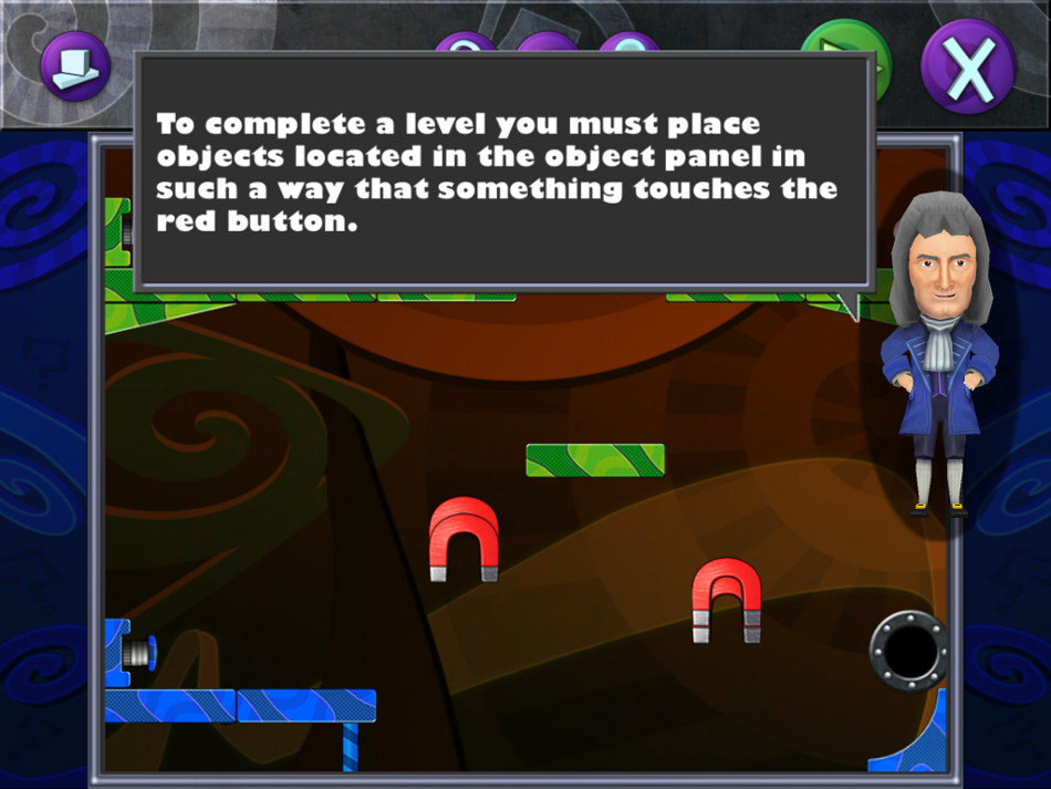 Dans ce jeu de réflexion, le joueur doit faire en sorte d'activer un interrupteur. Pour cela, une boule peut être lâchée dans chaque niveau, possédant une masse et donc, une inertie et une force. Au joueur d'agencer quelques éléments mis à disposition pour amener la boule à l'interrupteur, ou créer une réaction en chaîne déclenchée par la boule et activer le dispositif pour passer au tableau suivant.