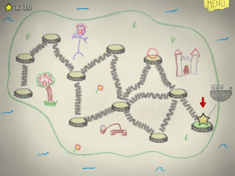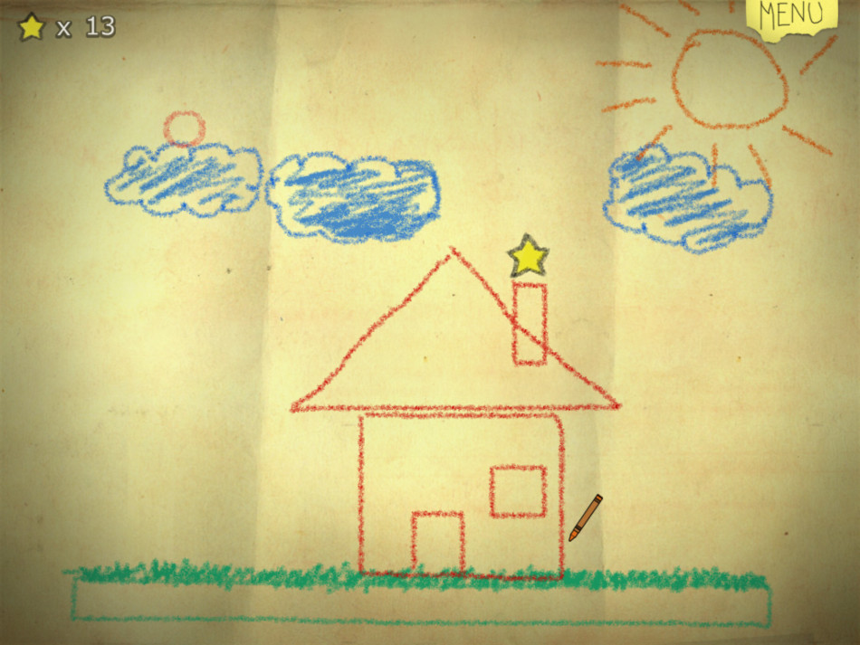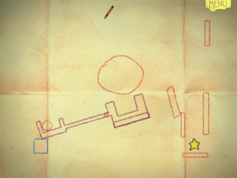 Crayon Physics fait appel aux grands principes des jeux où il faut monter une machine infernale pour faire arriver une balle à un endroit précis. Mais ici, plutôt que de placer des objets définis par le jeu, le joueur doit dessiner ses propres éléments. Avec le doigt, il devient donc possible de franchir un fossé, de dessiner une boîte qui tombera sur la balle pour la faire avancer, etc... Le gameplay étant soigné, les objets que l'on trace apparaissent fidèlement sur l'écran et interagissent logiquement avec le jeu. Ce principe, simple dans l'absolu, ne serait rien sans une gestion parfaite de la physique. Et de ce côté, c'est réussi : les objets mal accrochés glissent et tombent, la taille de ce que l'on dessine influe sur sa masse, les grosses boîtes lâchées sur la balle envoient cette dernière plus loin que les petites. Dernier point, l'aspect visuel, qui est l'une des grandes forces du jeu, est absolument ravissant. Comme le jeu consiste à dessiner ses propres éléments, tout à l'écran est représenté sous forme de crayonnés, comme des dessins d'enfants, couchés sur une feuille de papier froissée. L'effet est saisissant et donne vraiment l'impression d'un dessin au crayon qui s'anime. Très accessible, le jeu est un très bon puzzle game addictif qui propose une difficulté croissante pour un challenge intéressant.