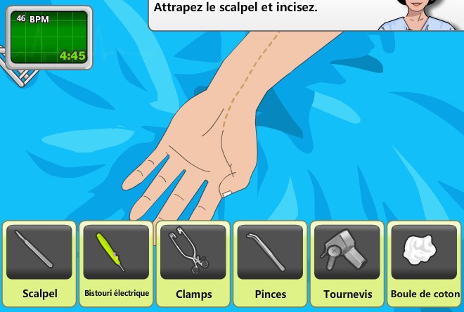 Dans l'épisode qui nous intéresse ici, il est donc question d'opérer une fracture du bras. Si visuellement, le jeu n'est pas laid, il n'est pas non plus injouable dans la mesure ou le gameplay repose sur système basique de point and click. Là ou le bât blesse, c'est dans l'absence totale de challenge : une infirmière nous indique en permanence ce qu'il faut faire, à tel point que l'on se demande parfois pourquoi elle ne fait pas l'opération elle-même. Si l'on suit les instructions, le jeu se finit en quelques minutes.